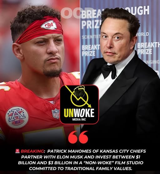 In a stunning cross-industry move, Kansas City Chiefs quarterback Patrick Mahomes has reportedly teamed up with tech billionaire Elon Musk to launch a massive investment into the entertainment world. Sources close to the project confirm that the pair are investing between $1 billion and $3 billion in a new film studio that is branding itself as “non-woke” and committed to producing content focused on traditional family values.